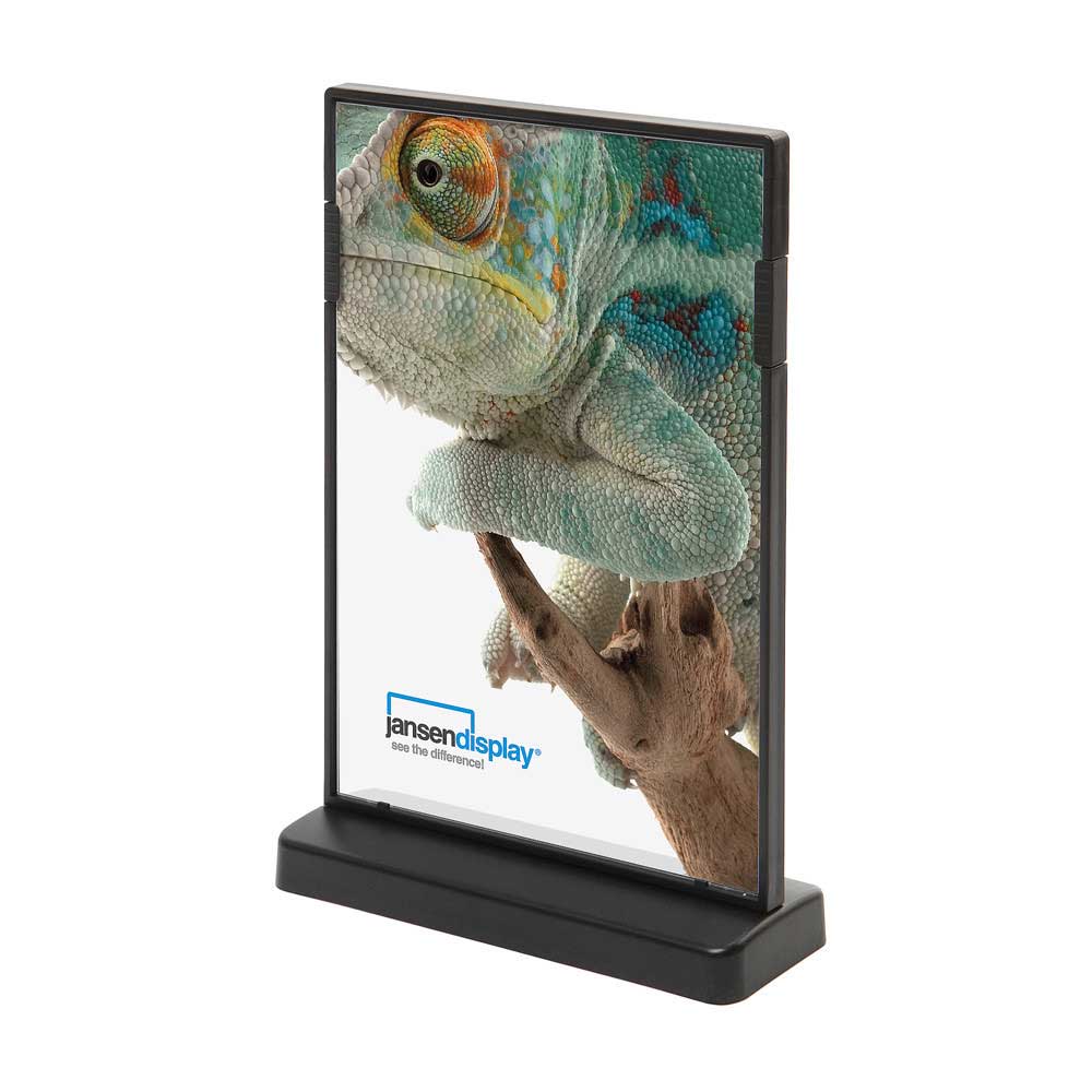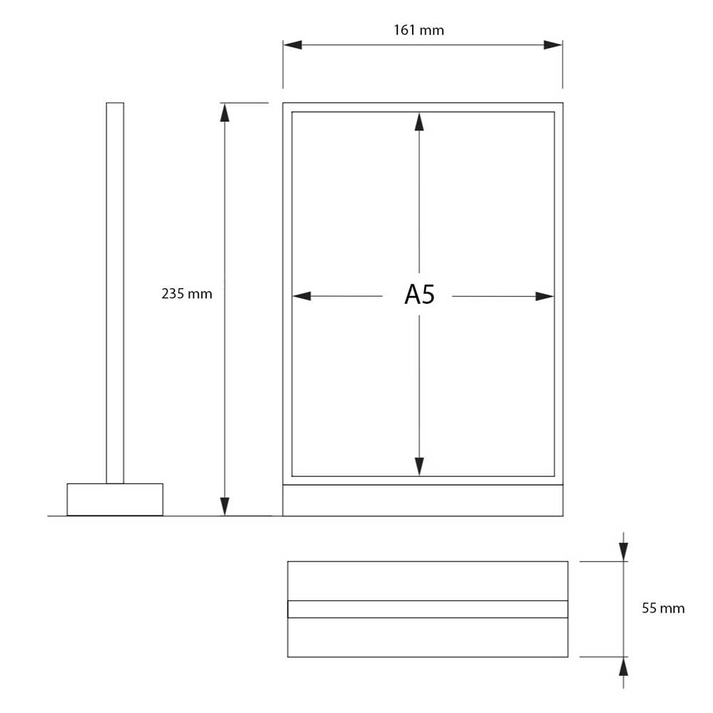 Menyställ med T-form i A5 format i svart utförande och en front i plexiglas gör att innehållet syns klart och tydligt. En stilfull svart menyhållare i plast som passar perfekt på restauranger, barer och mottagningar för att visa och sprida information och reklam.
