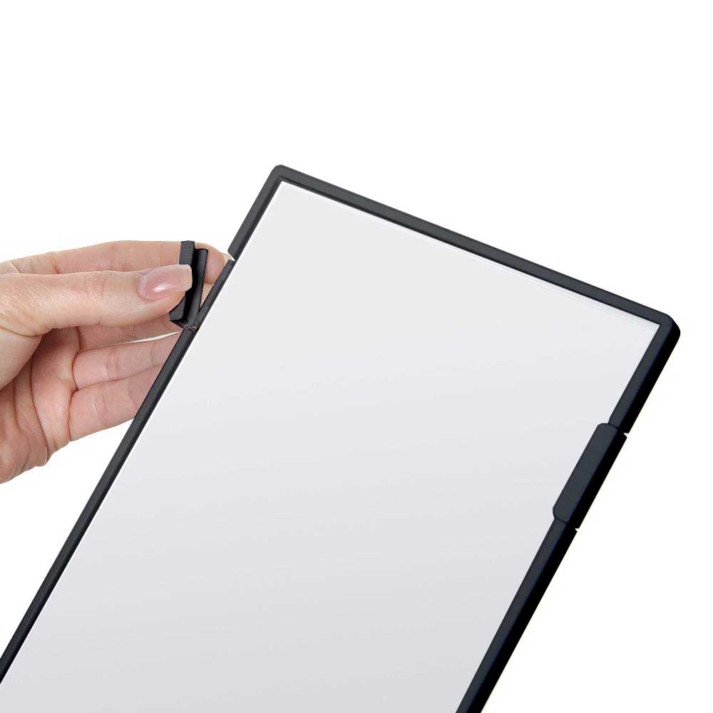 Det är enkelt att byta ut information i detta stabila akrylställ genom att skjuta in innehållet från baksidan. Detta eleganta informationsställ i akryl står stadigt tack vare den stabila och hållbara basen vilket också gör innehållsbytet snabbt och smidigt.