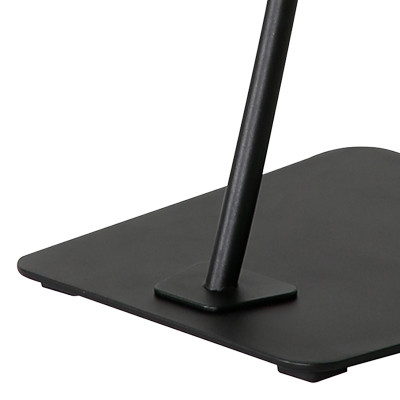 Stället är placerad på en stabil fot i svart pulverlackerad stål och du väljer själv vid montering om du vill att expostället ska presentera ditt budskap i liggande eller stående format.