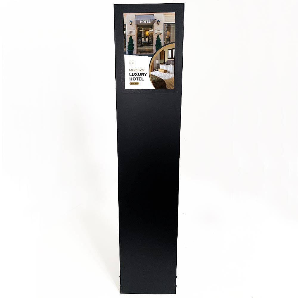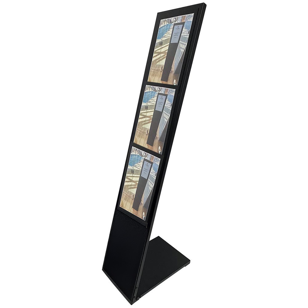 Skyltstället är tillverkat i svart pulverlackerat stål för lång livslängd i både kommersiella och offentliga miljöer. Levereras med en A4 magnetram och har plats för upp till fyra ramar totalt, vilket ger möjlighet att visa flera budskap samtidigt.