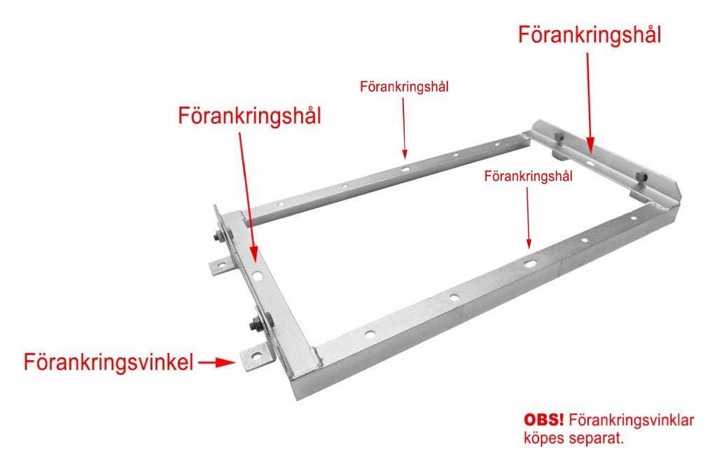 Vi rekommenderar att cykelställ med låsbågar markförankras.