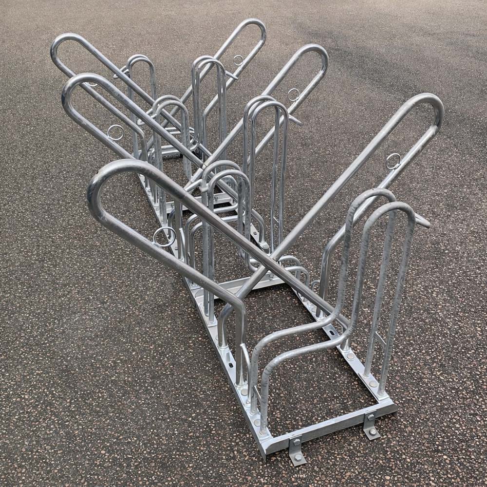 Detta cykelställ har varit en storsäljare i över 20 år och är väldigt populär på skolor och i offentliga miljöer. Detta är ett varmgalvaniserat cykelställ med hög och låg parkering för att spara utrymme. Det går i efterhand att öka antal platser genom att enkelt sammankoppla ställen. Det är också enkelt att köpa till ny hjulhållare för att byta ut om olyckan varit framme. Cykelställen är förberedda för markfästen.
