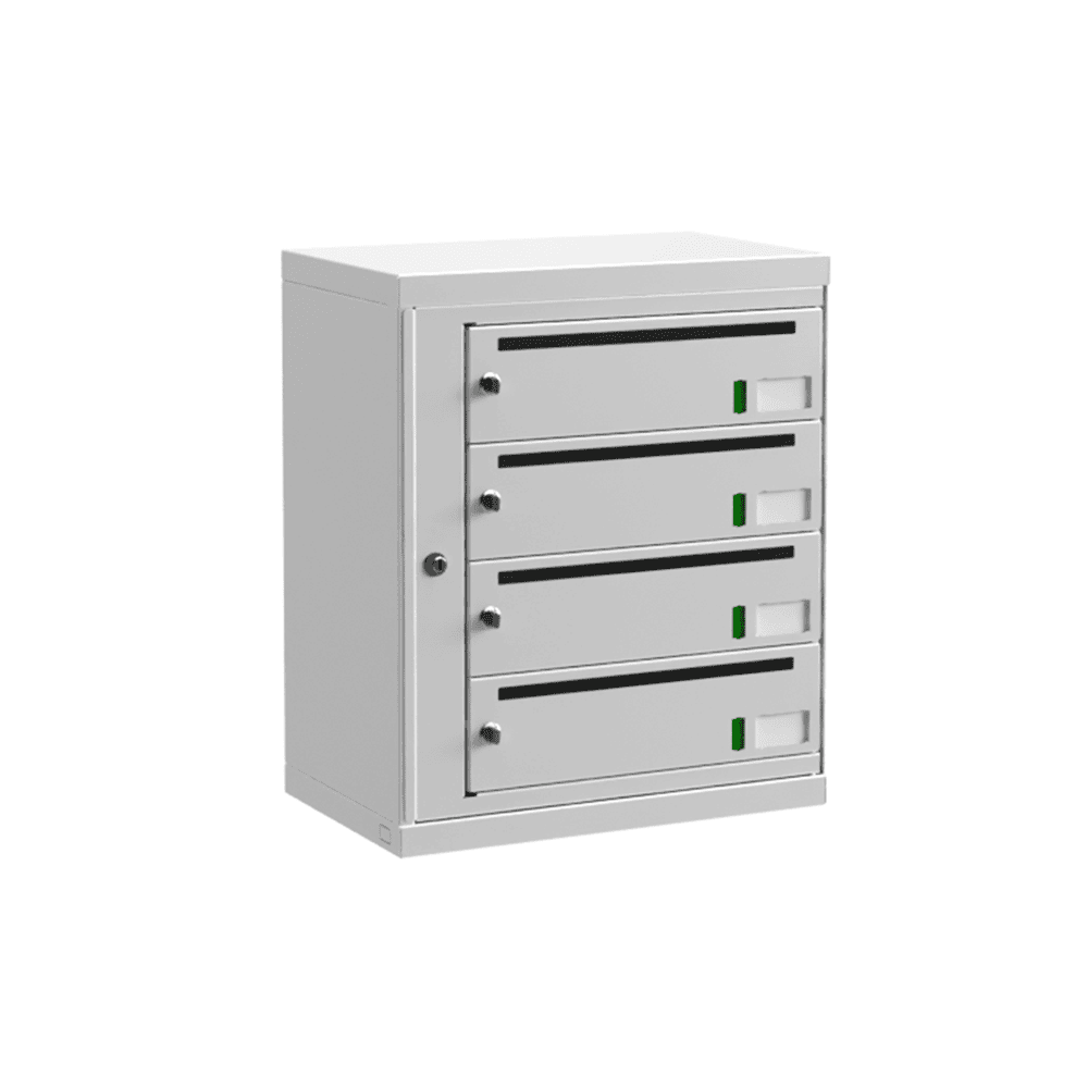 Denna digitala fastighetsbox är enkel att installera tack vare sin plug-n-play-funktion – det enda som behövs är att ansluta stickkontakten till ett eluttag. Administration och namnmärkning hanteras enkelt via ett användarvänligt webbgränssnitt. Postfacken kan öppnas på olika sätt: genom en app på telefonen (både iOS och Android), med en tagg, elektronisk nyckel eller genom att dela behörighet via e-post eller SMS-länk. Läsare för tagg, app eller nyckel kan antingen integreras i boxen eller monteras på väggen intill.
