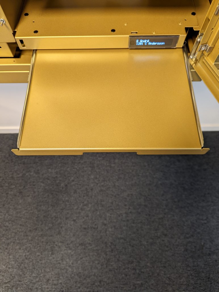 Detta utgragningsbara avlastningsbord till Renz Excellence är ett tillval som kan väljas i tillbehör. Denna hylla monteras i postboxen och kan dras ut från boxens undersida när frontdörren är öppen.