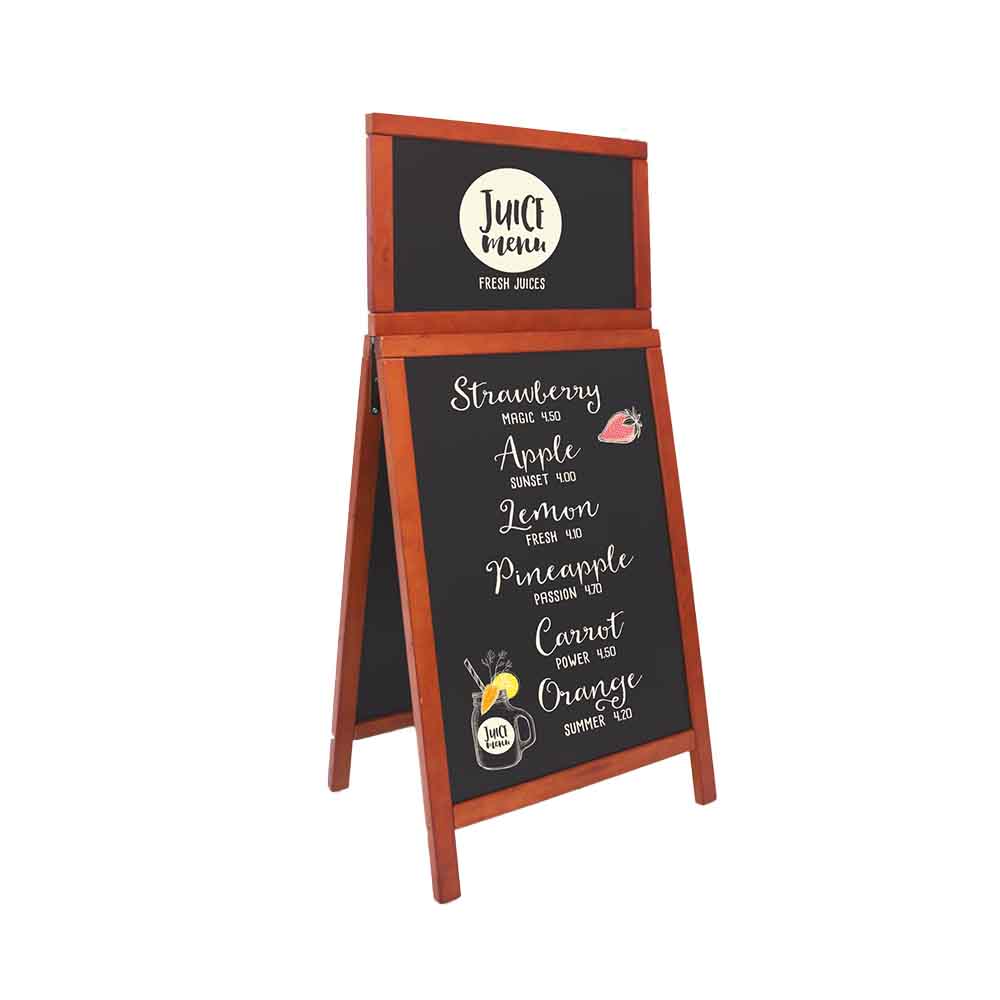 En praktisk och smart funktion är den avtagbara överdelen av tavlan där du kan välja om du vill skriva säljande erbjudande eller montera en logotyp för extra synlighet. Den avtagbara toppskylten gör det enkelt att skriva och rita nya budskap utan att flytta hela skylten.