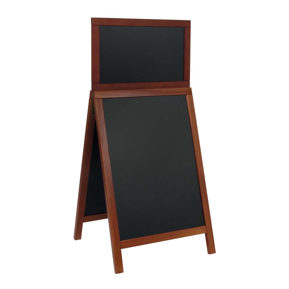 Gatupratare Deluxe med griffeltavla och avtagbar toppskylt för profilering och erbjudanden. Denna trottoarpratare av hög kvalitet är tillverkad av gummiträd som lackats tre gånger, griffellaminat och beslag i rostfritt stål vilket gör den robust och tålig. Griffelskivan har en UV-beständig och reptålig yta som är lätt att rengöra vilket gör att den håller sig snygg och fräsch under lång tid.