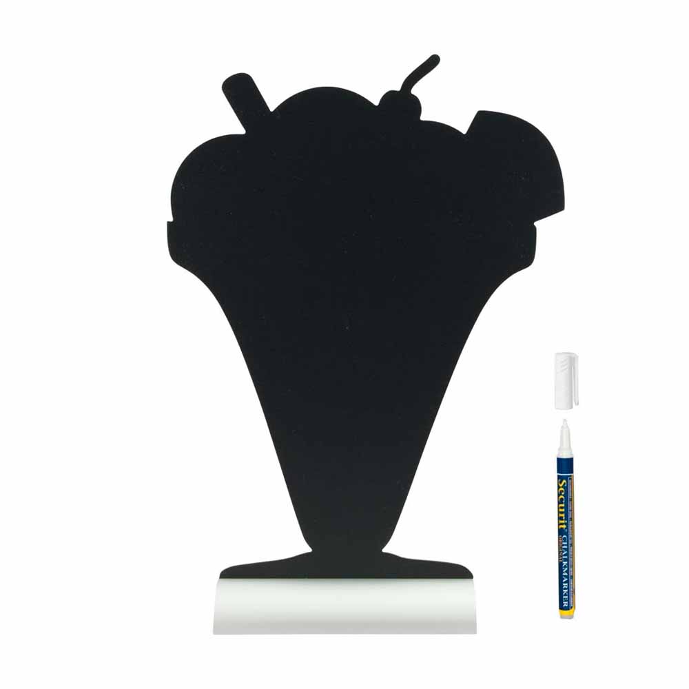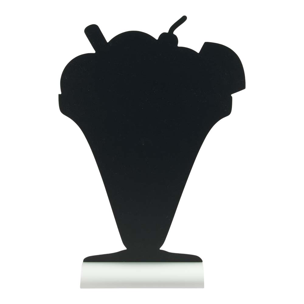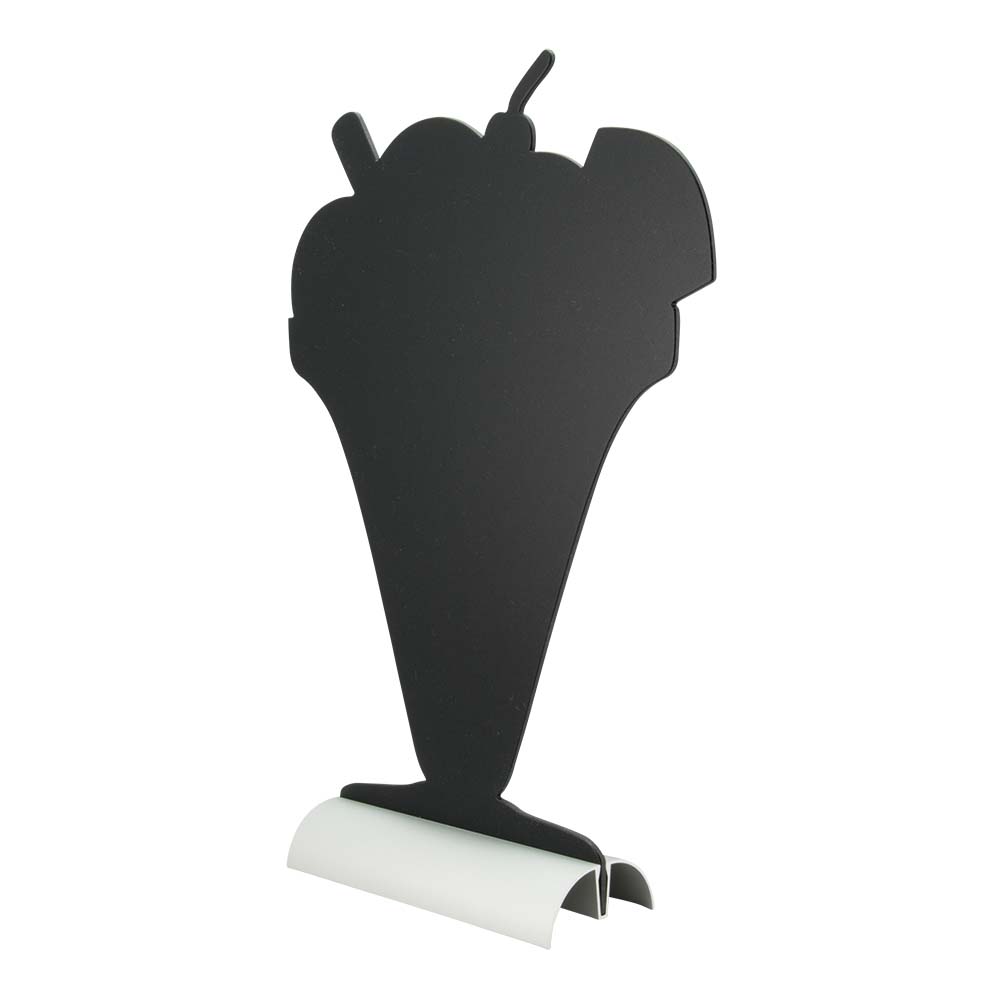 Griffelskiva bord siluett glass är en bordsgriffel med silhuett av en mjukglass. En snygg aluminiumfot av hög kvalitet håller denna bordsgriffel stadig på bordet eller disken. Griffelskivan är avtagbar för att du snabbt och enkelt ska kunna skriva erbjudande på båda sidor av skivan.