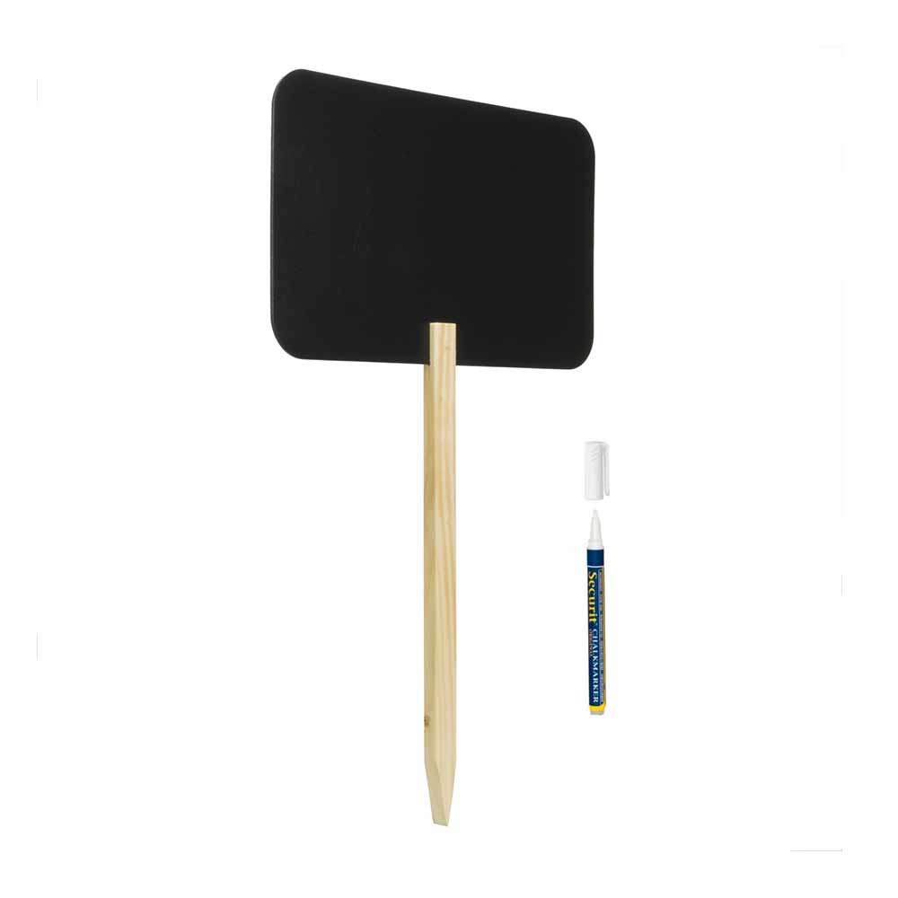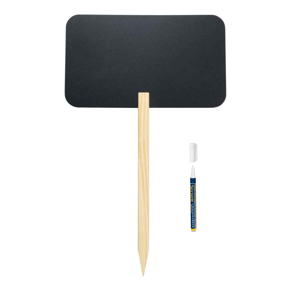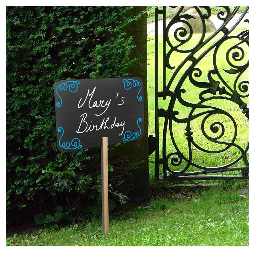 Griffelskylt Rektangel med pinne levereras komplett med träspett och en styck vit griffelpenna för inomhusbruk. Tavlan är utformad som en rektangel och passar utmärkt som t ex vägvisare till entrén, för att markera en plats, som trädgårdsskylt eller för att skapa uppmärksamhet vid olika evenemang och privata tillställningar.