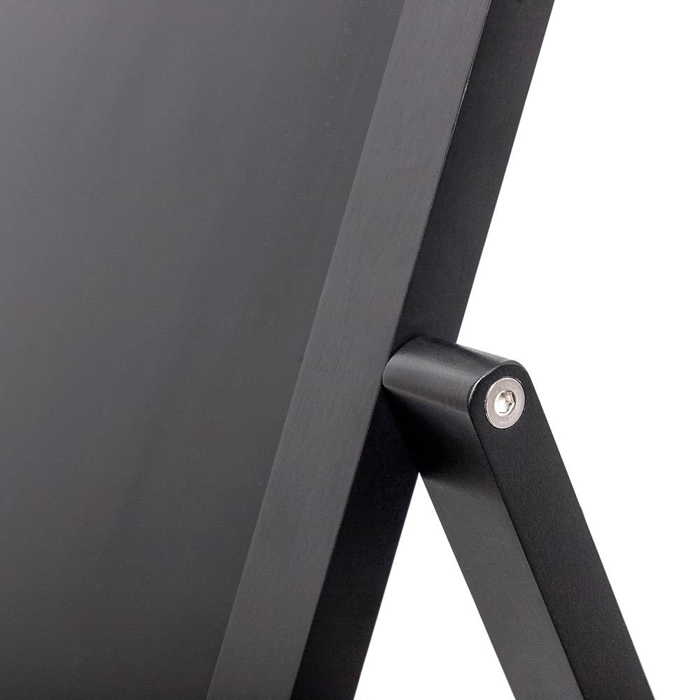 Vändbar griffelskylt Flip - Svart 55x105 cm är en trottoarpratare med en dubbelsidig griffeltavla som du kan "flippa" över från den ena sidan till den andra för att välja vilket reklambudskap du vill visa.