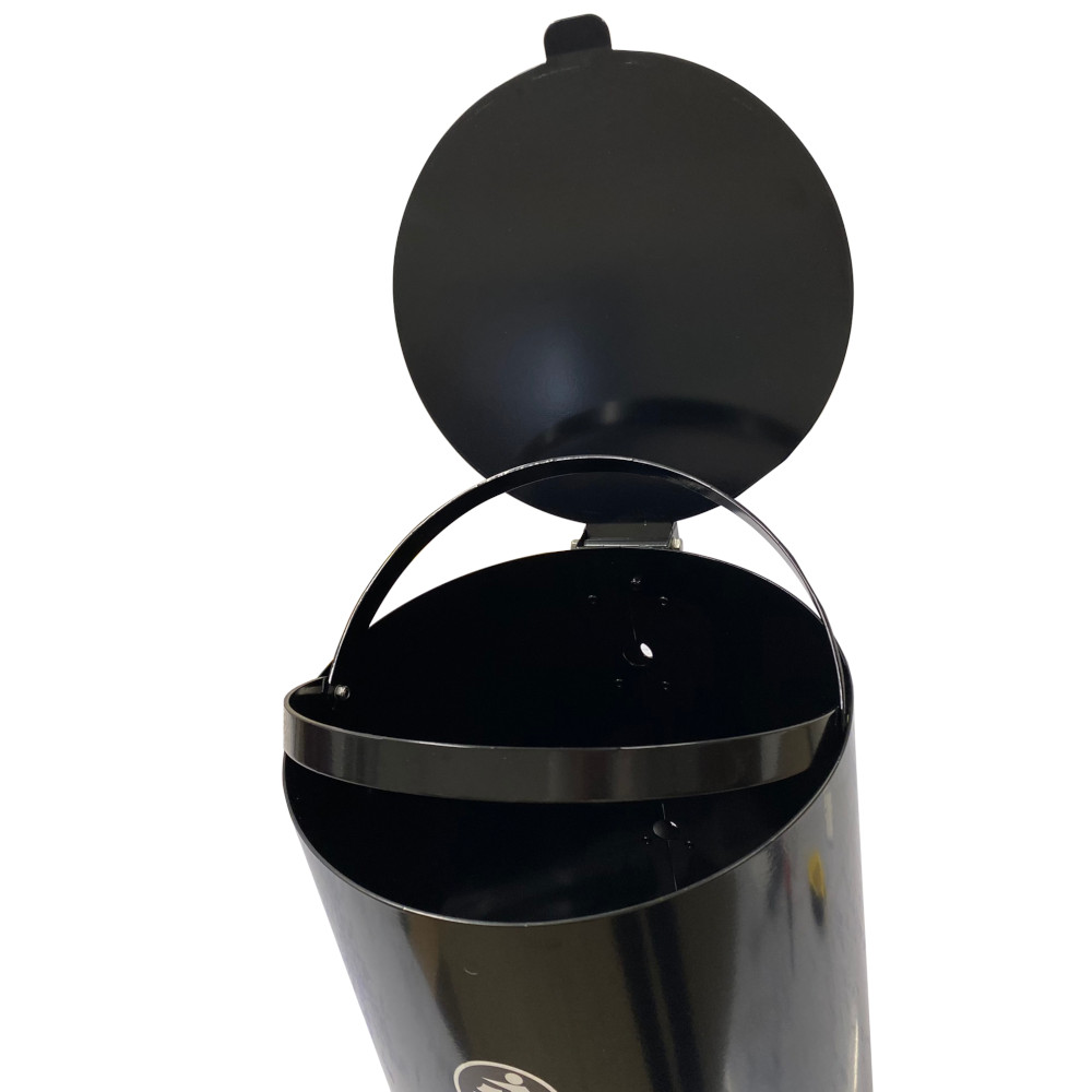 Hundlatrin Parken 35 Liter Cylinder är en smidig papperskorg med både lock och en tydlig symbol för att visa att man ska slänga hundbajspåsar i behållaren. Den är tillverkad av 1,5 mm stål som är pulverlackerad i en svart kulör. Hundlatrinen är enkel att montera på en stolpe eller vägg.