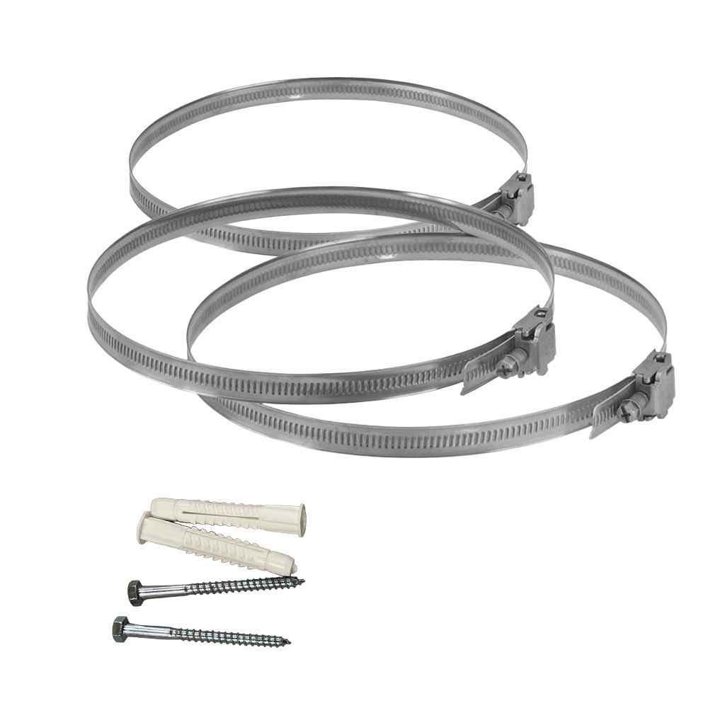 - Klämmor för stolpe samt plugg och skruv medföljer