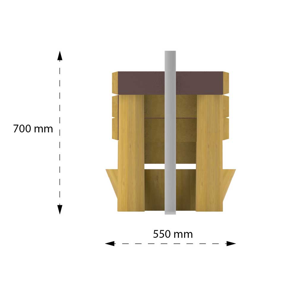- Material: Robinia, plywood, polyeten, sibiriskt lärkträ, rostfritt stål