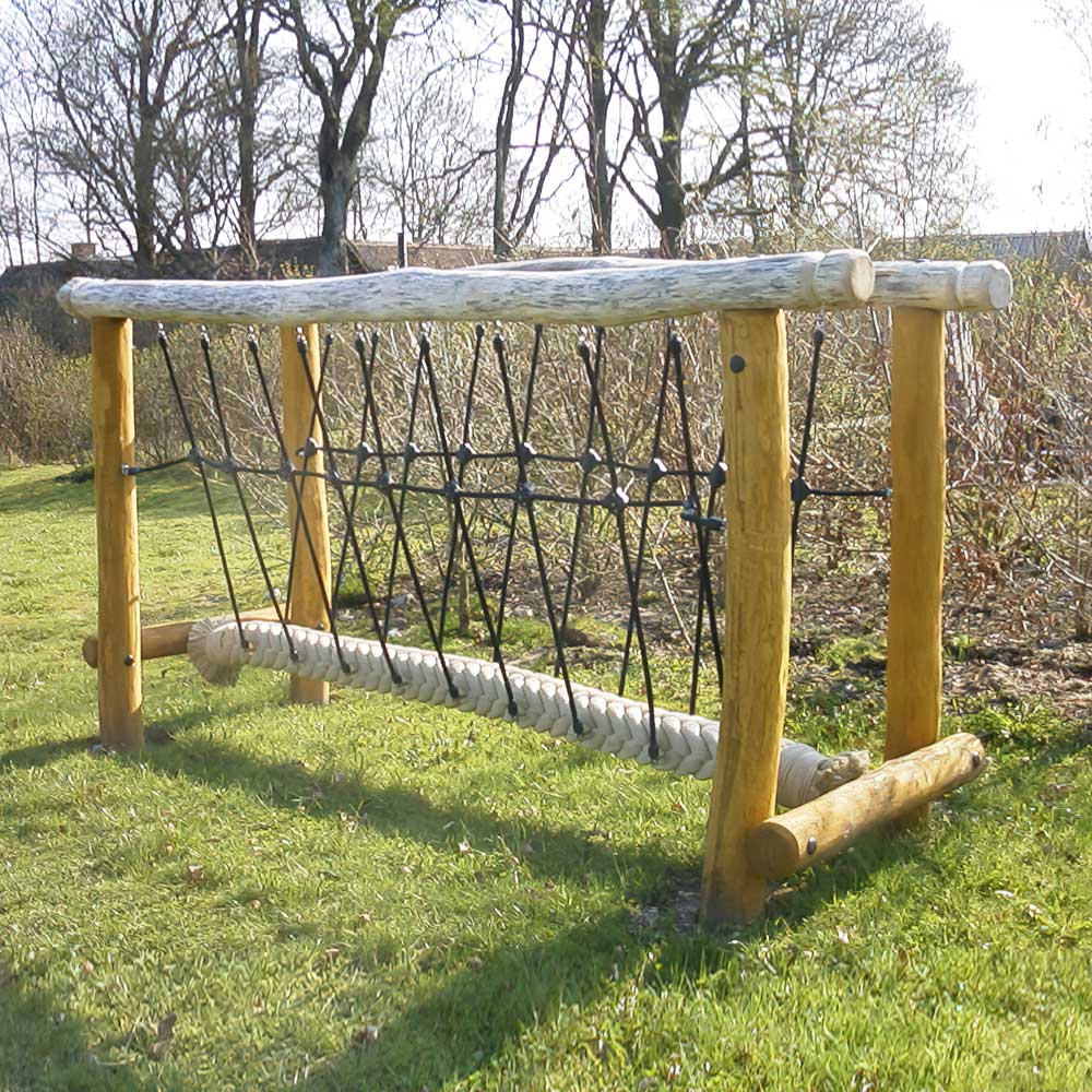 Denna lekställning är tillverkad av robiniaträ och passar utmärkt utomhus i parker, skolor och andra lekplatser. Genom att kombinera repbron med andra produkter ur Naturlek-serien skapas en varierad lekmiljö med många utvecklande aktiviteter.