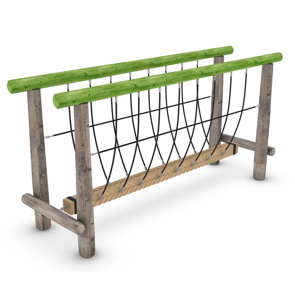 Balancia repbro är en del av Naturlek-serien och är utformad för att ge barn en utmanande men lekfull balansaktivitet. De rörliga repen gör varje passage unik och stimulerar både koordination och balanssinne.