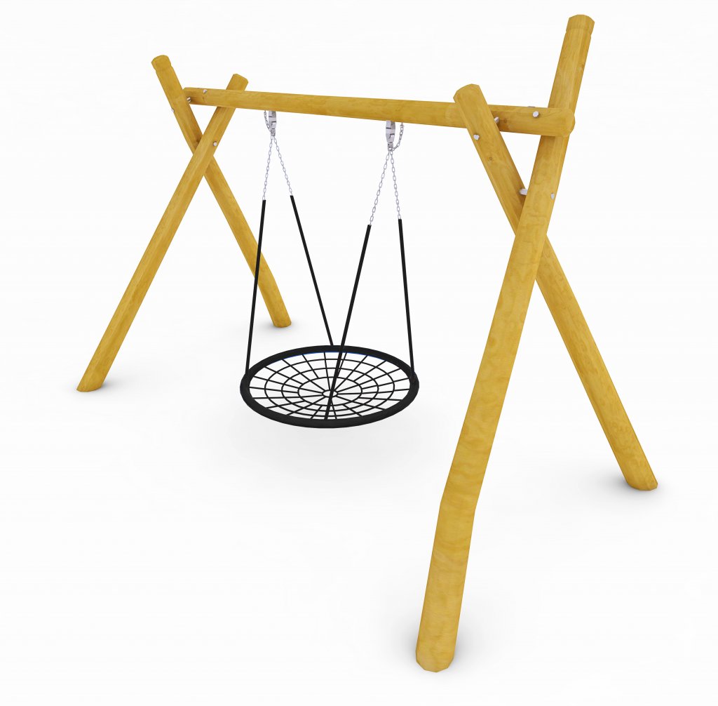 Gungställningen är tillverkad av kraftiga trästockar i Robinia-trä, ett mycket hållbart material med naturligt skydd mot röta, skadedjur och tuffa väderförhållanden. Dess robusta design gör den till ett utmärkt val för lekplatser i både stads- och naturmiljöer.