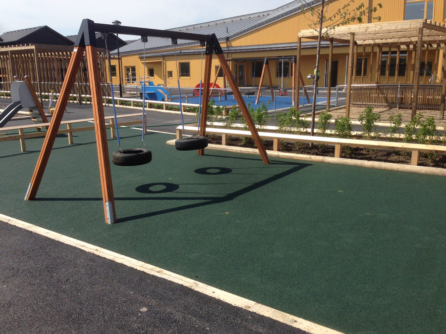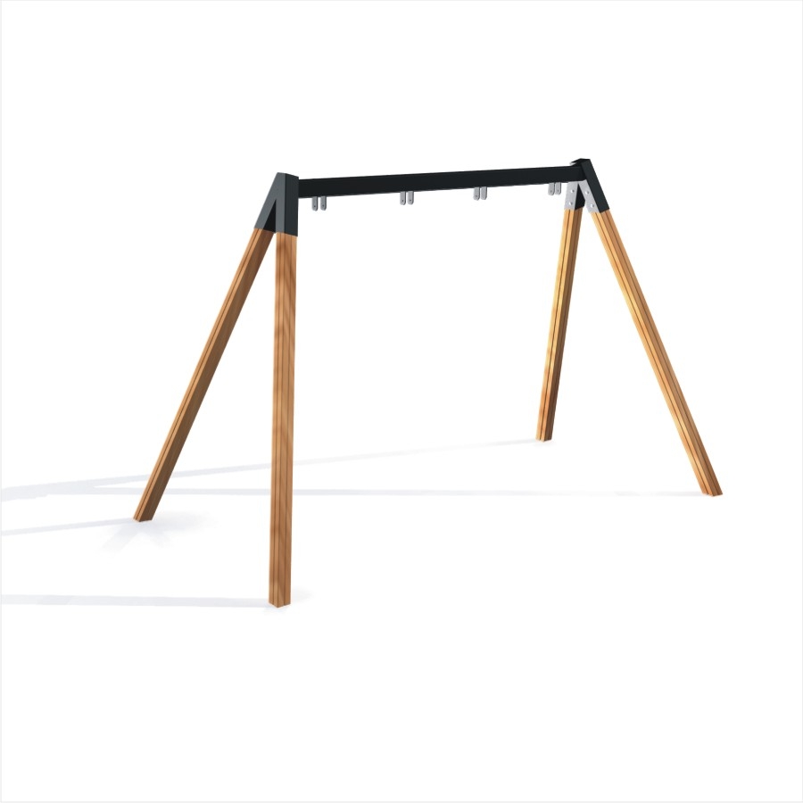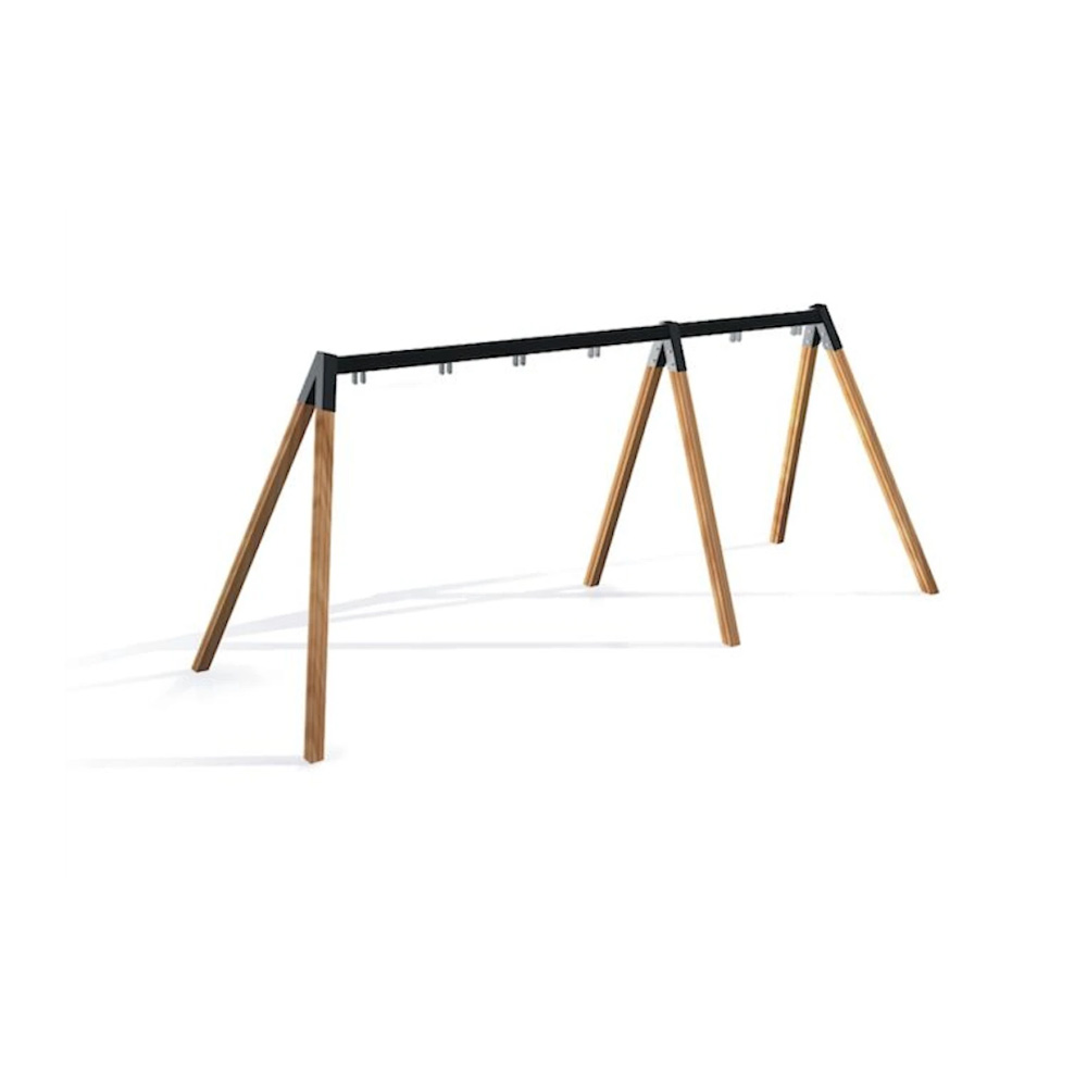 Gungställning i trä – 1–6 gungor är ett populärt val för skolor och förskolor där många barn vill gunga samtidigt. Den är byggd av naturligt tåligt lärkträ och förstärkt med en överliggare i pulverlackerat stål för extra säkerhet.