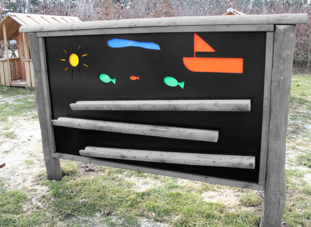 Holly lekskärm är en färgglad panel som uppmuntrar barn att utforska och experimentera. Genom att hälla vatten eller lägga runda föremål högst upp i rännorna får barnen utforska vad som händer och hur det rör sig neråt. Lekskärmen är tillverkad i det hållbara och väderbeständiga Robinia och står sig perfekt utomhus på lekplatser, förskolor och bostadsområden.