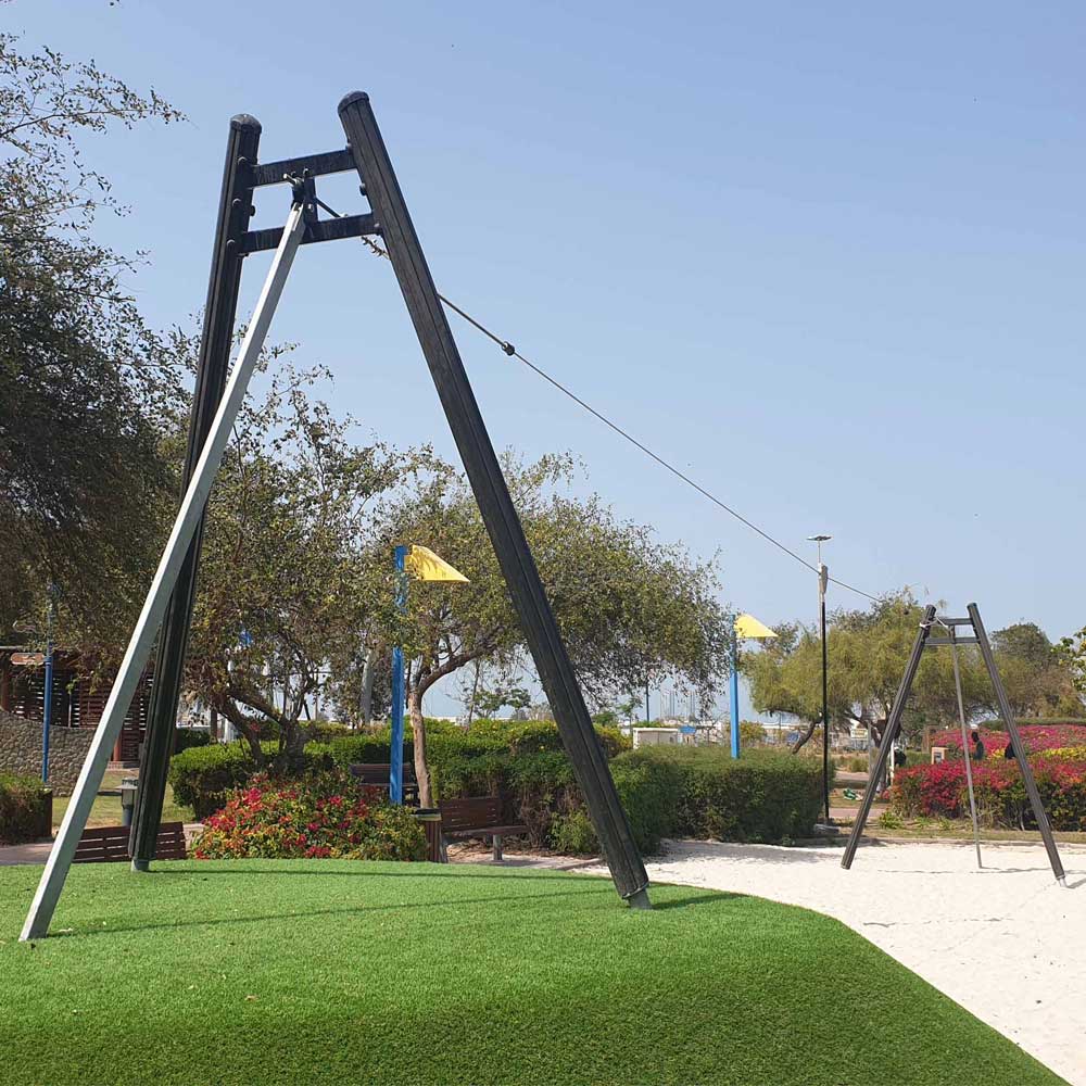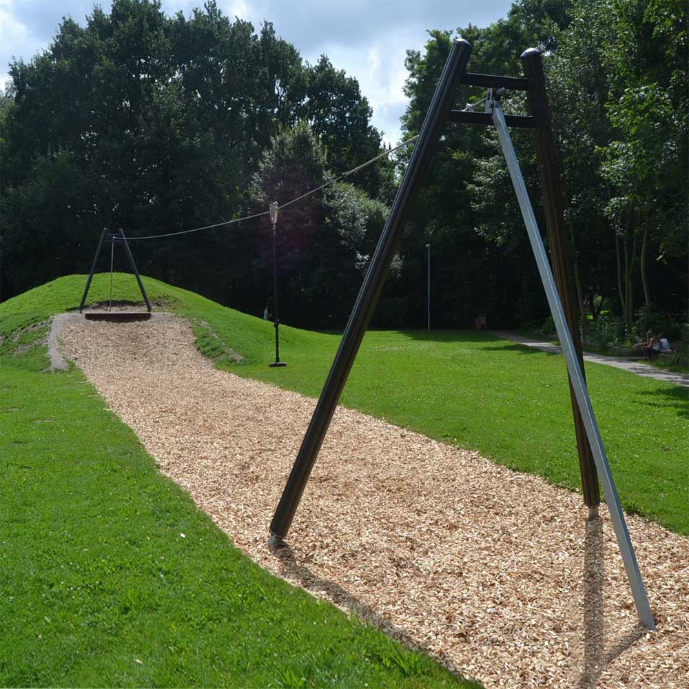 Linbanan är en klassiker som bjuder in till fart, rörelse och skratt. Den 35 meter långa banan passar perfekt i skolmiljöer, parker och större lekplatser där barn från 6 år och uppåt får utlopp för sin energi i en trygg och stimulerande miljö. Tack vare sin gedigna konstruktion och certifiering enligt EN 1176-1 samt TÜV uppfyller linbanan alla säkerhetskrav för offentlig utomhusmiljö.