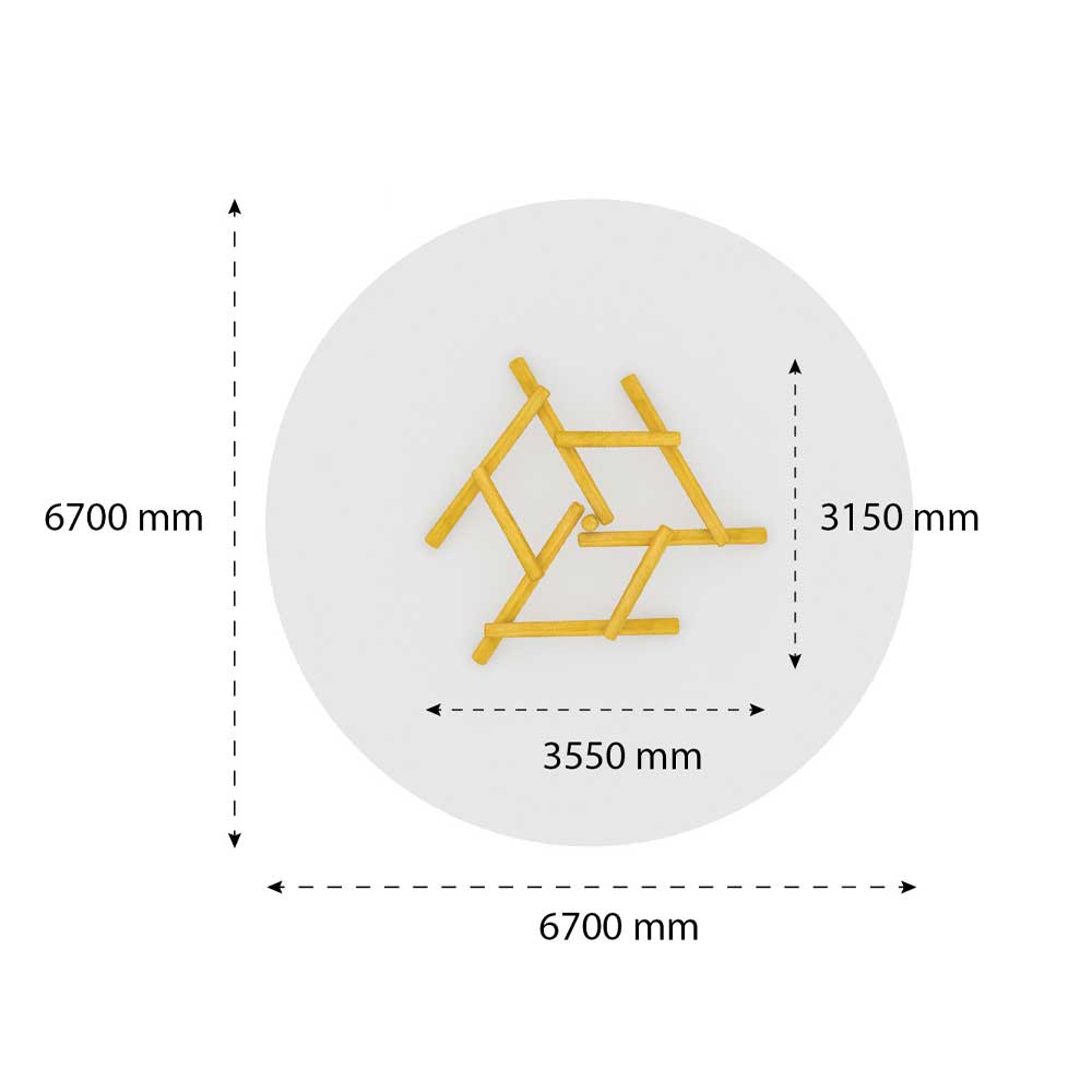 Pyramidställningen kan kombineras med andra produkter i naturlek-serien som gungor, lekstugor och annan utrustning för att skapa en enhetlig och naturnära lekplats på exempelvis en skolgård eller offentlig lekpark.