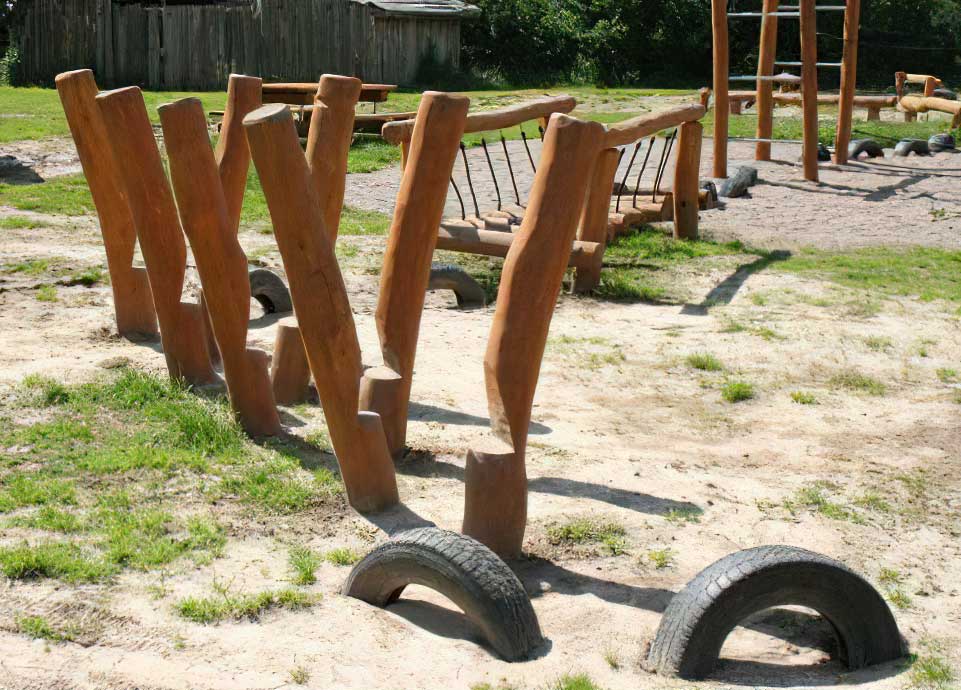 Stolparna kan enkelt kombineras med andra produkter i naturlek-serien som gungor, lekstugor och annan utrustning för att skapa en enhetlig och naturnära lekplats på exempelvis en skolgård eller i ett bostadsområde.