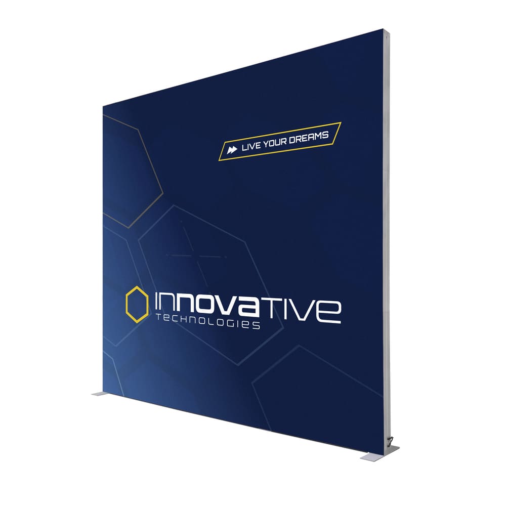 Denna belysta mässvägg är framtagen för företag, organisationer och verksamheter som behöver en stabil och tydlig lösning för tillfälliga presentationer i inomhusmiljö. Ljuset är jämnt fördelat över hela ytan och ger god läsbarhet för affischer, budskap och grafiskt material vid mässor och event.