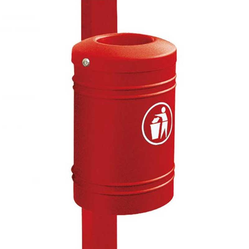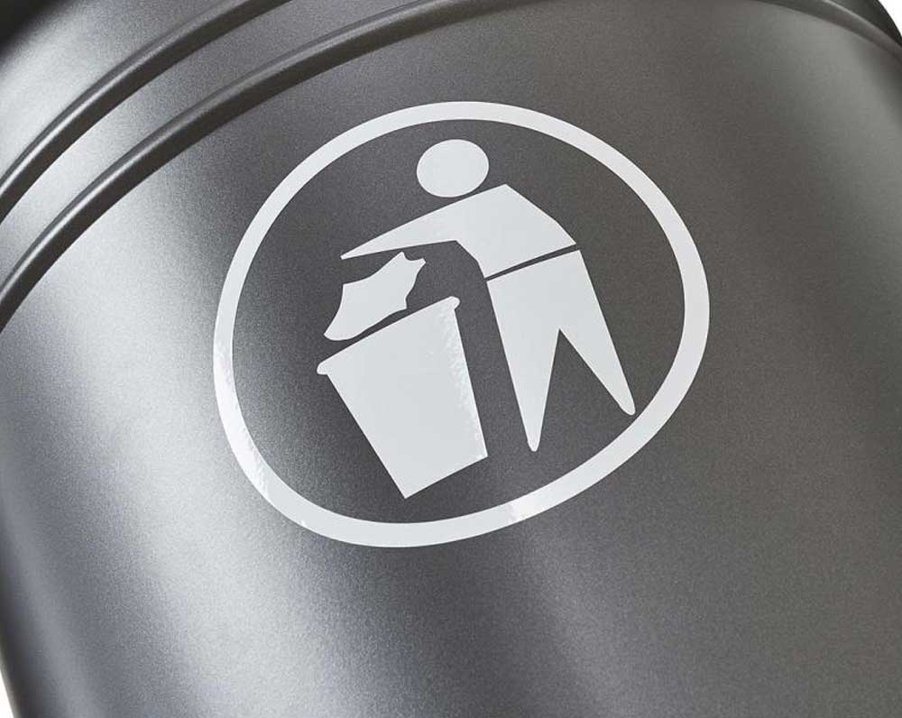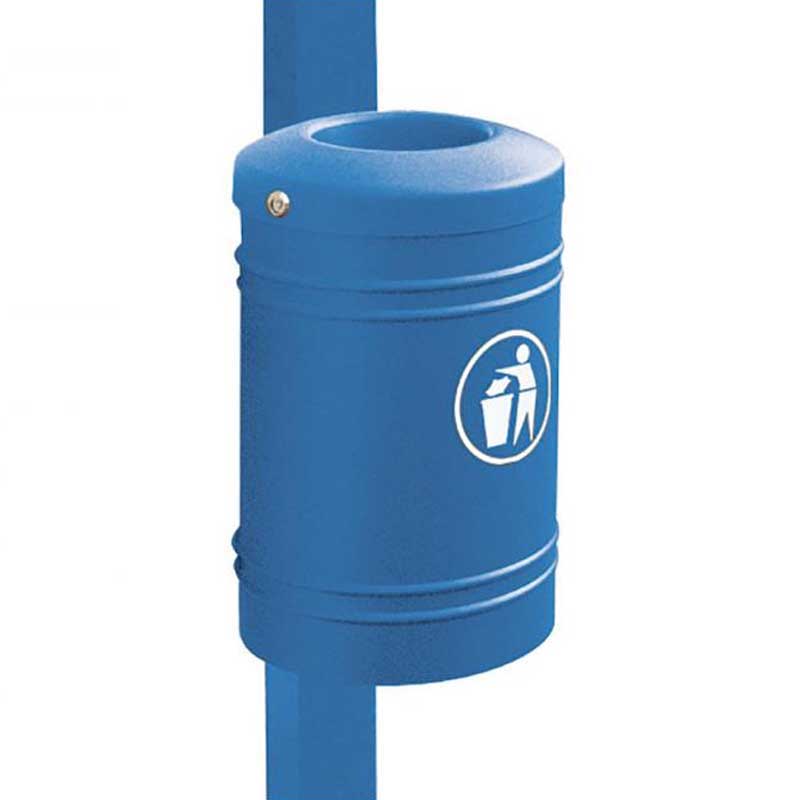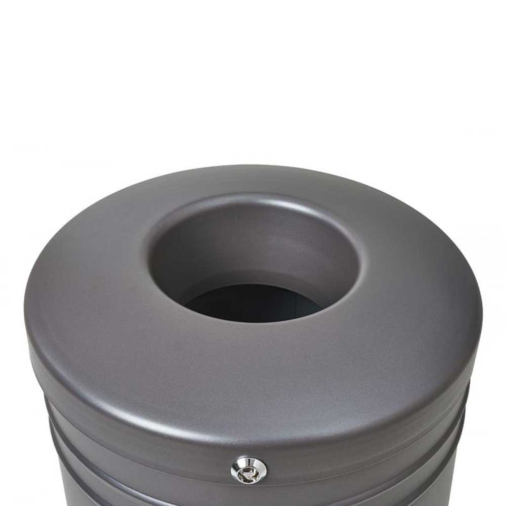 Tack vare den mindre öppningen förhindras större avfall och hushållssopor från att hamna i korgen. Locket är också särskilt konstruerat för att hindra eventuella bränder genom en självsläckande funktion. Papperskorgen öppnas enkelt med trekantsnyckel på locket och låses med ett snäpplås. Esterel kan anpassa lock och cylinder i 10 olika färger och levereras med klämmor för montage på Ø76 mm stolpe. Ett genomtänkt val för den som kräver både funktion och säkerhet.