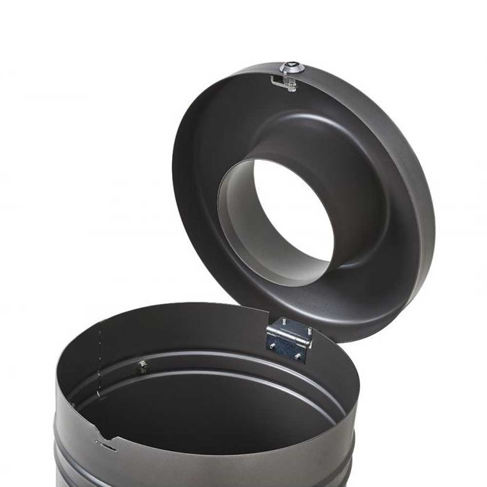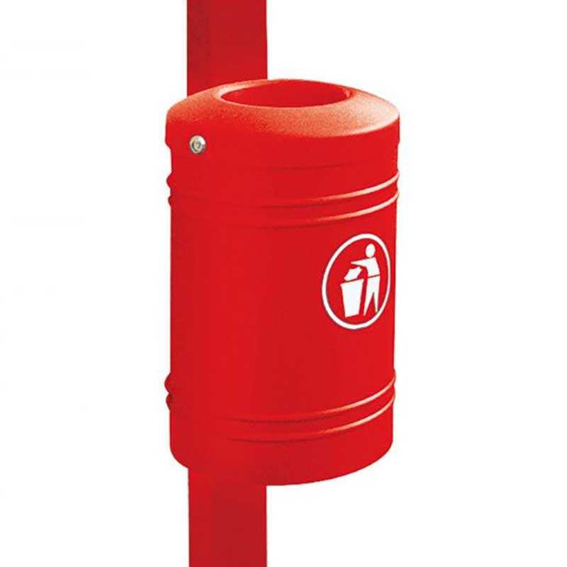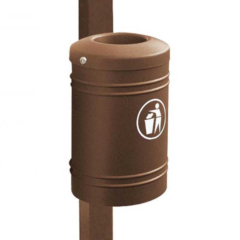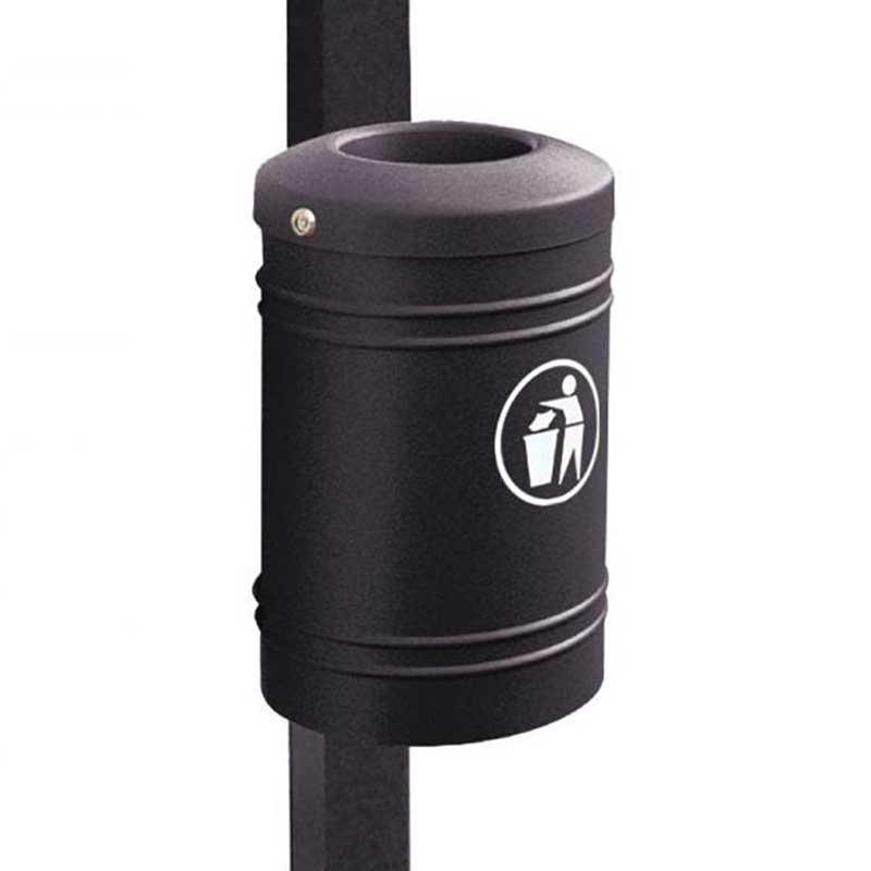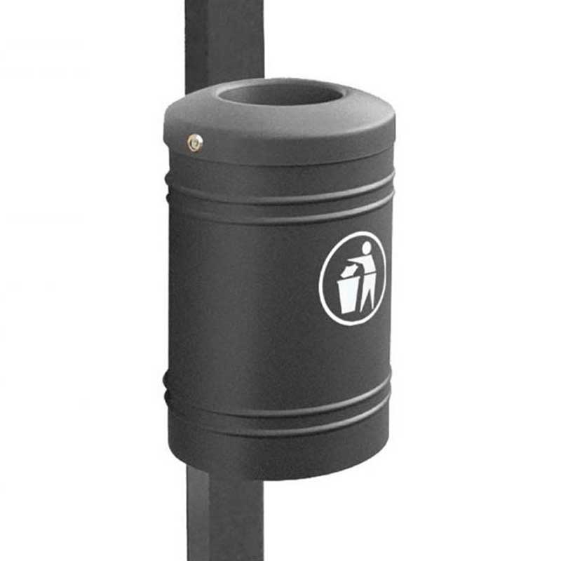 Tack vare den mindre öppningen förhindras större avfall och hushållssopor från att hamna i korgen. Locket är också särskilt konstruerat för att hindra eventuella bränder genom en självsläckande funktion. Papperskorgen öppnas enkelt med trekantsnyckel på locket och låses med ett snäpplås. Esterel kan anpassa lock och cylinder i 10 olika färger och levereras med klämmor för montage på Ø76 mm stolpe. Ett genomtänkt val för den som kräver både funktion och säkerhet.
