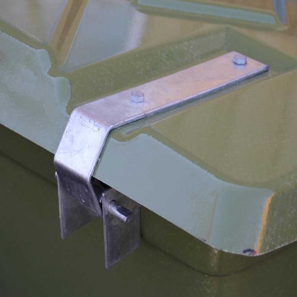 Hållbar och funktionell design. Vår sandbehållare är tillverkad med högsta kvalitet och är konstruerad för att vara både funktionell och hållbar. Alla gångjärn, bultar och kedjor är galvaniserade för att skydda mot rost och förlänga produktens livslängd. Den invändiga kedjan säkerställer att locket stannar på plats när det är uppfällt, vilket gör det enkelt att hantera behållaren.
