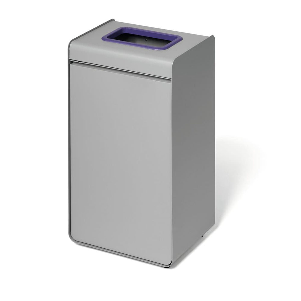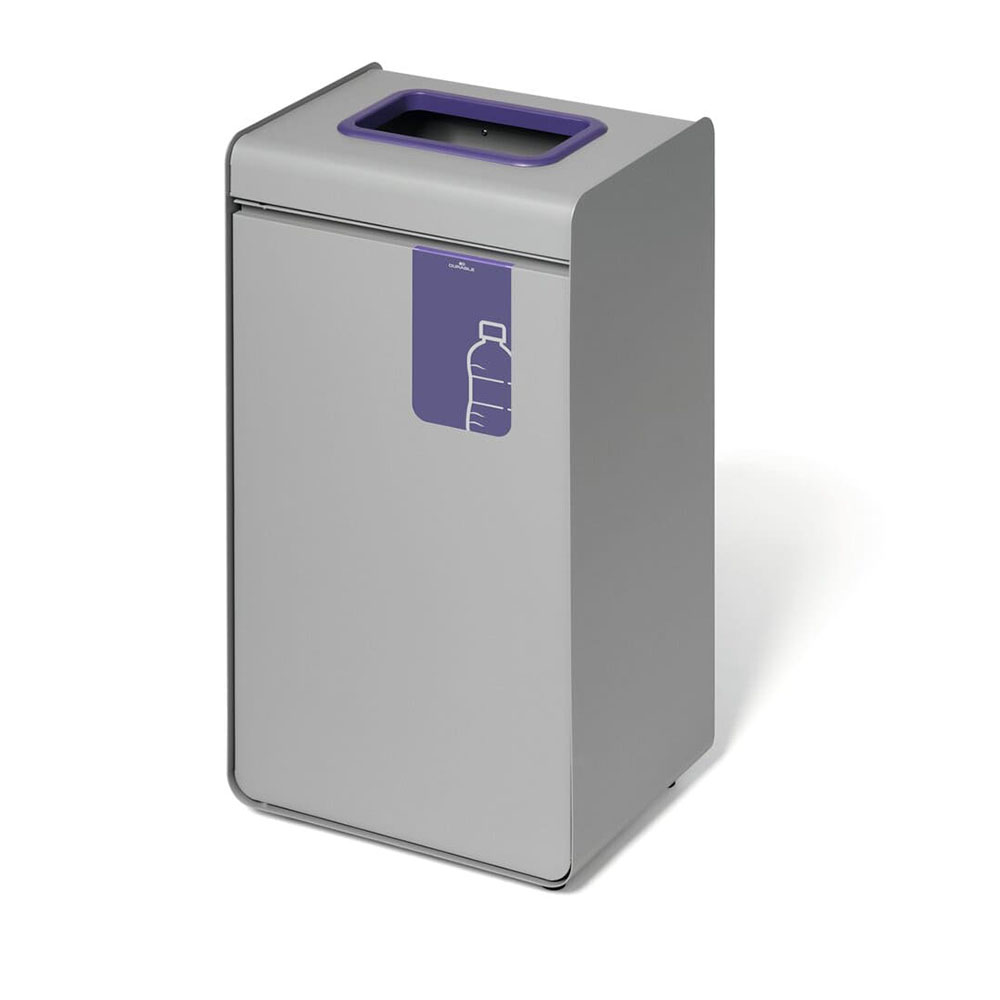 DURASORT® 55 liter är ett källsorteringskärl tillverkat av pulverlackerad metall med borttagbar innerbehållare i plast, utvecklat för lång livslängd och daglig användning i professionella inomhusmiljöer. Den stabila konstruktionen kombineras med en lila färgmarkerad öppning och tydlig symbol för korrekt sortering av plastförpackningar.