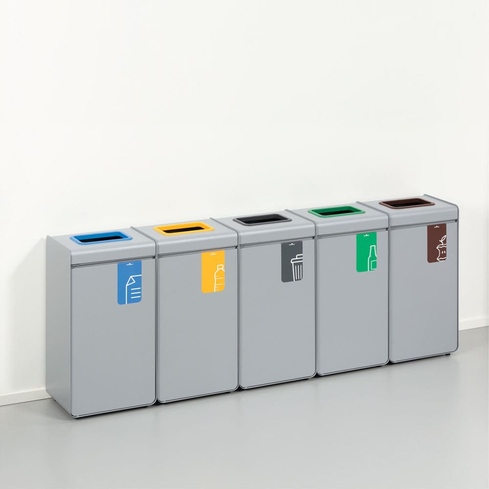 Ett funktionellt avfallssorteringskärl för kontor, skolor, matsalar och andra verksamheter där restavfall behöver hanteras på ett tydligt och driftsäkert sätt.